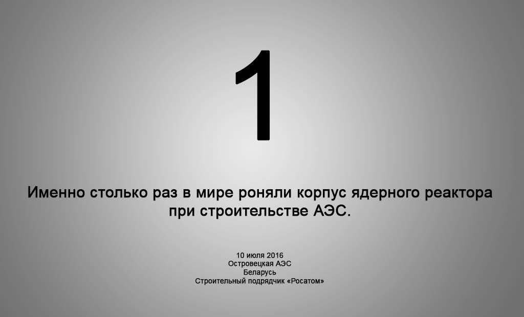 И как бы инцидент, который имел место на площадке строительства Белорусской атомной электростанции, которая строится при участии России, а именно: "факт обрушения реактора при его установке в реакторном отделении", тому подтверждение.