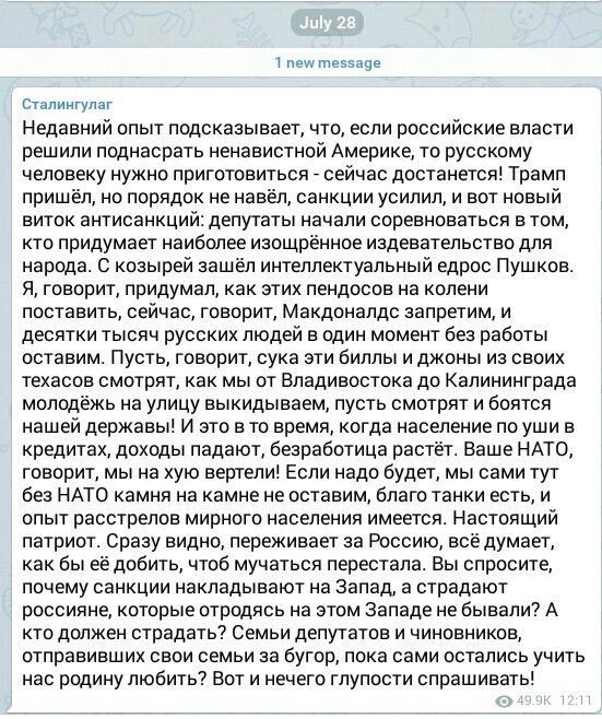 Date: 2017-07-30 09:56 pm (UTC)Сидит такой себе аутсорсер дома, колупается удаленно в ферме с проектом, и тут хуяк! Люди в масках и бронежилетах, мордой в пол, два предупредительных в ноутбук - статья за терроризм, и вперед, в турне по кунгуровским местам.